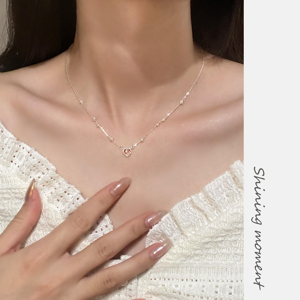 นาลัน S925 สร้อยคอไข่มุกรูปหัวใจเงินแท้ สร้อยคอหรูหราหวานซึ้ง Y00478