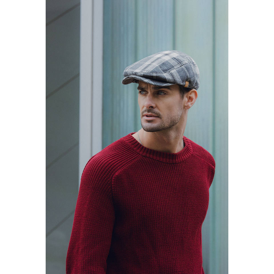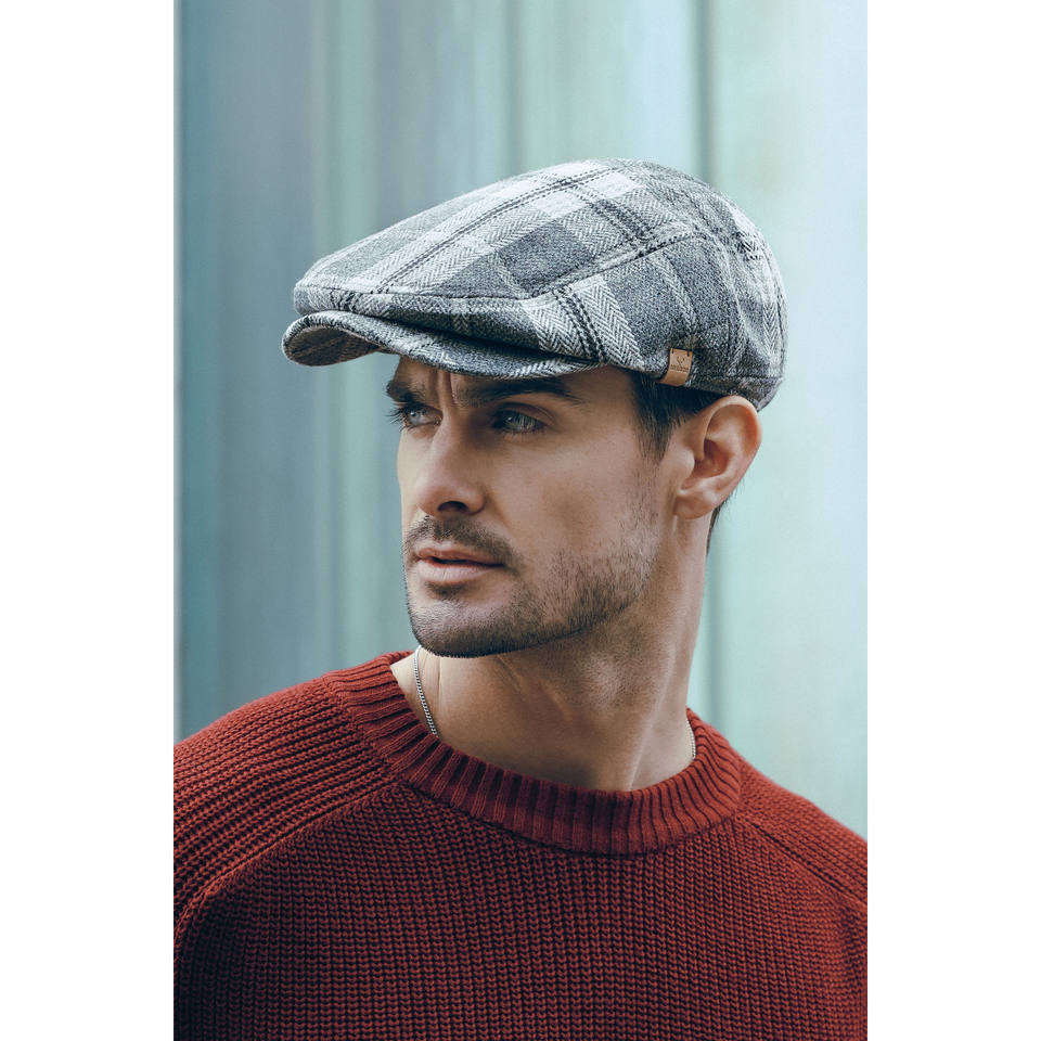Nali หมวกสแนปแบคสำหรับผู้ชาย, ผ้าโพลีเอสเตอร์ขนสัตว์ผสมลวดลายลายตารางสีน้ำตาลเหมาะสำหรับผู้ใหญ่ตามฤดูกาล