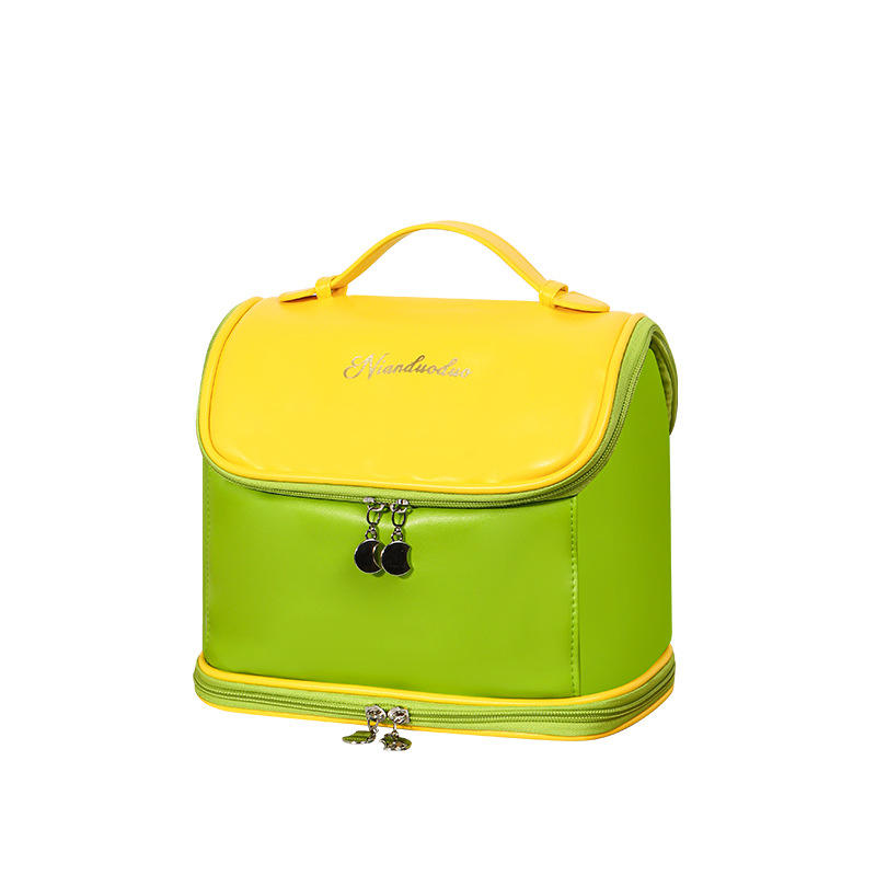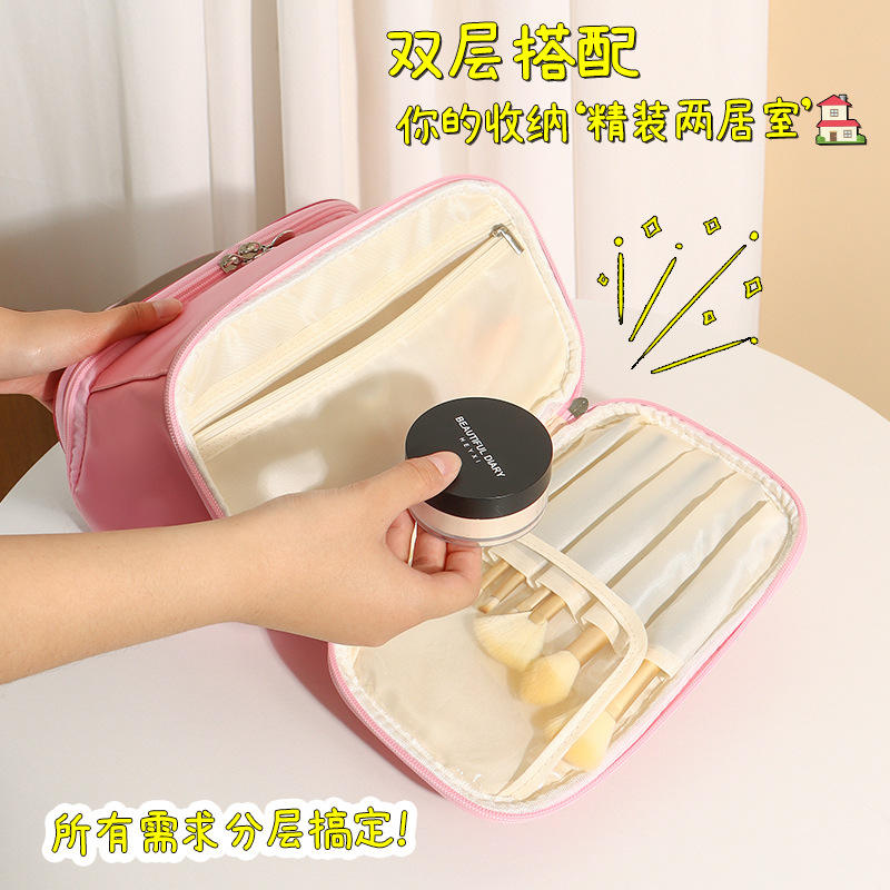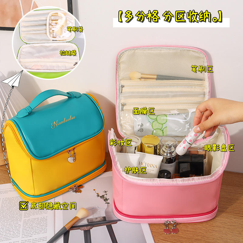กระเป๋าเครื่องสำอางนันดูโอลูสองชั้น กันน้ำ ขยายได้ พับเก็บได้ พกพาสะดวก พร้อมหูหิ้วนุ่ม ดีไซน์สีสันตัดกัน