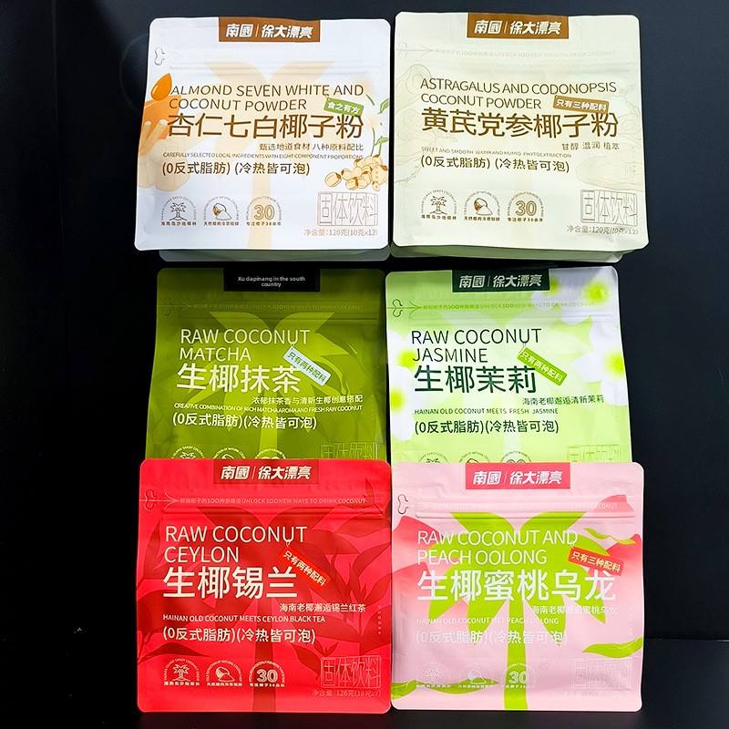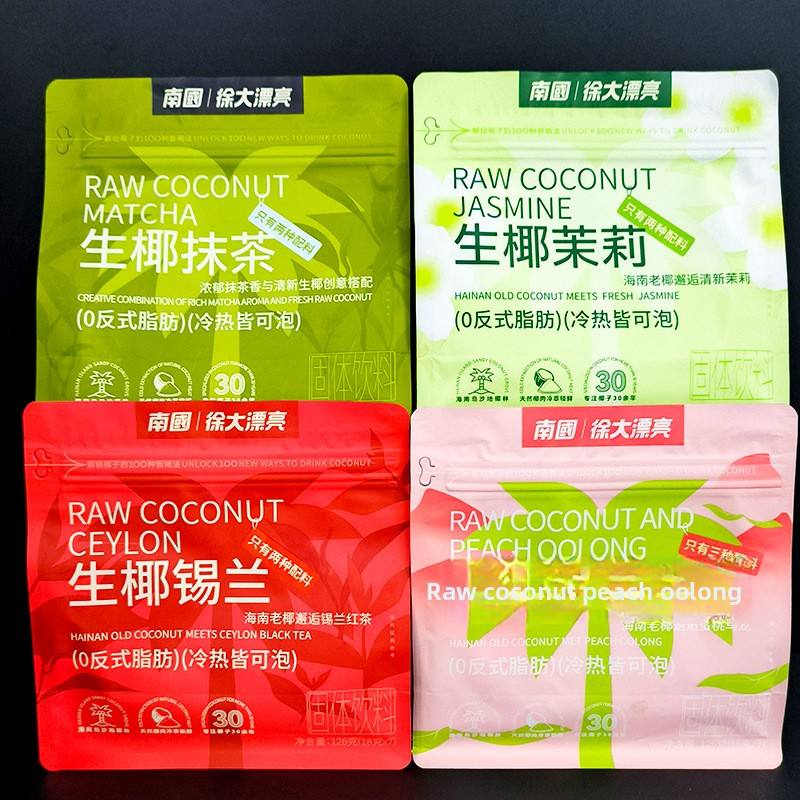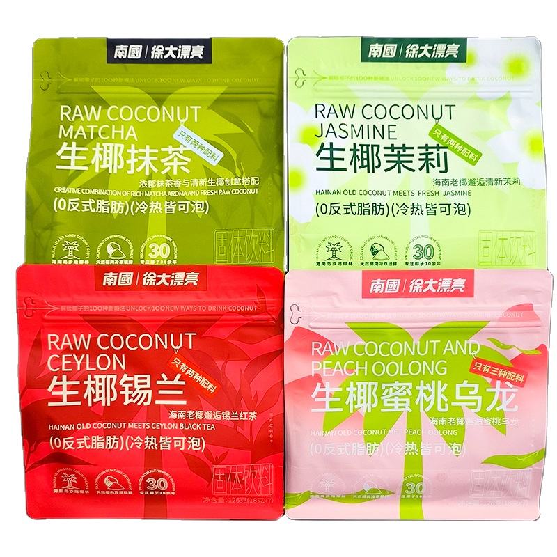 Nanguo Xu ใหม่120กรัมผงมะพร้าวสดพีชอูหลงชาอ่อนมัทฉะจัสมินศรีลังกาบรรจุเครื่องดื่มสำเร็จรูปแยกชิ้น