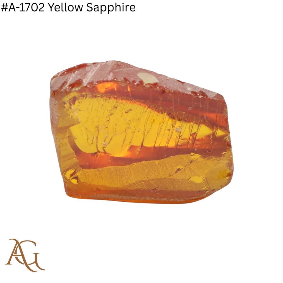 นาโน แล็บ โกรว์ รัฟ # พลอยสีเหลืองแซฟไฟร์ 1702 เม็ด ผ่านการเจียระไน ผลิตจากวัสดุสังเคราะห์ จำลองการสร้างในห้องปฏิบัติการ ผ่านการปรับเทียบด้วยนาโนซิทอล