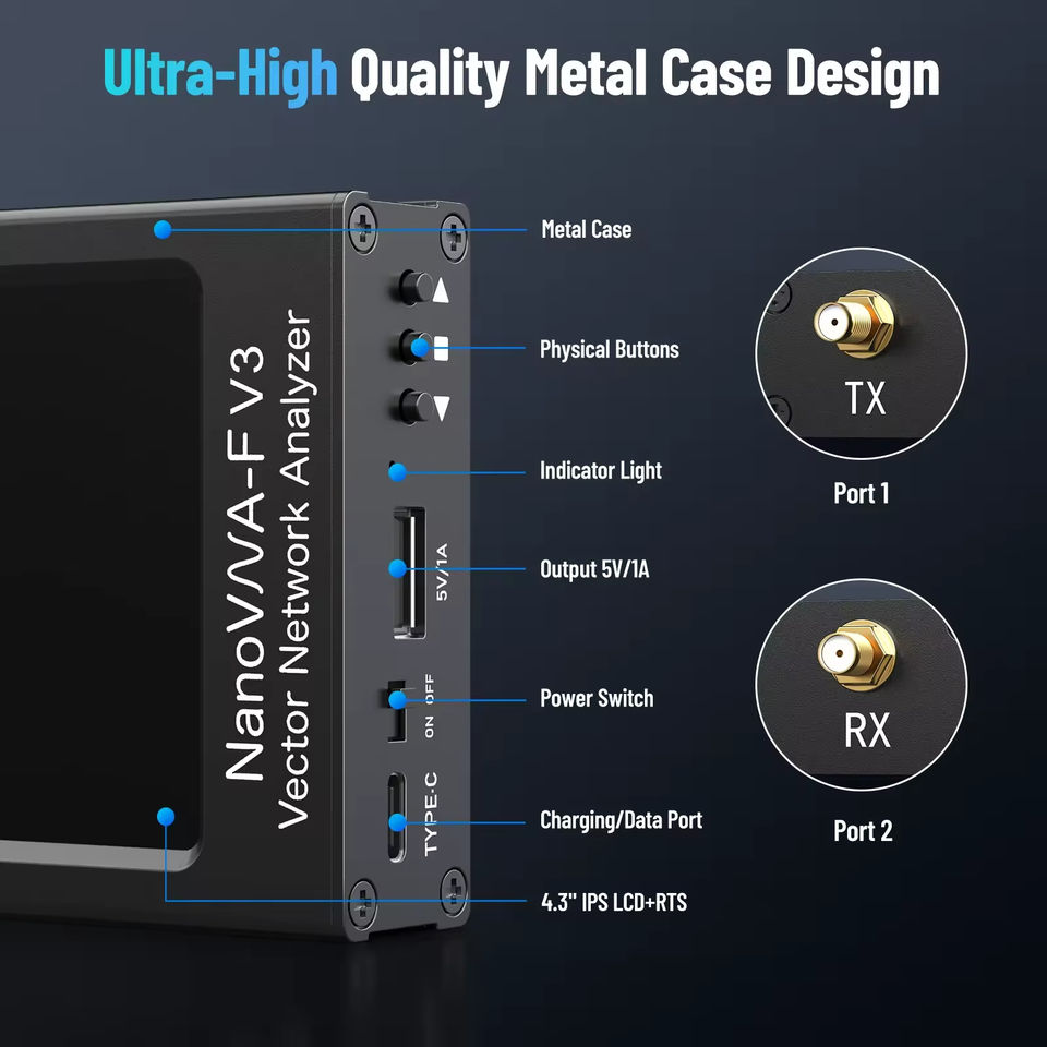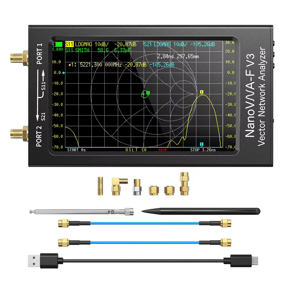 เครื่องวิเคราะห์เครือข่าย NanoVNA-F V3 รุ่นปี 2023 อัปเกรด 1MHz-6GHz หน้าจอ 4.3 นิ้ว HF VHF UHF VNA เสาอากาศ 801 จุดสแกน