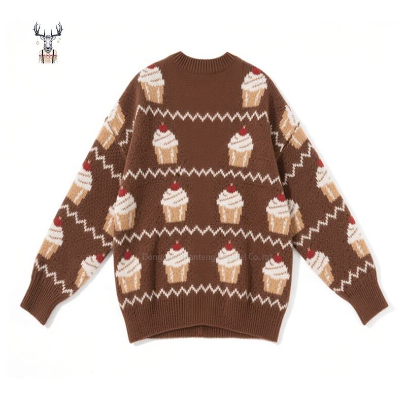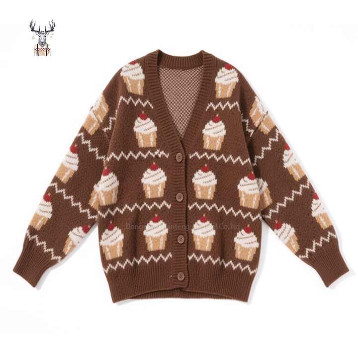 Nanteng เสื้อสเวตเตอร์ถักคอวีสำหรับผู้หญิงลายการ์ตูนเค้กการ์ตูนน่ารักวินเทจหนาอบอุ่นผ้าฝ้ายออกแบบได้ตามต้องการสำหรับฤดูหนาว
