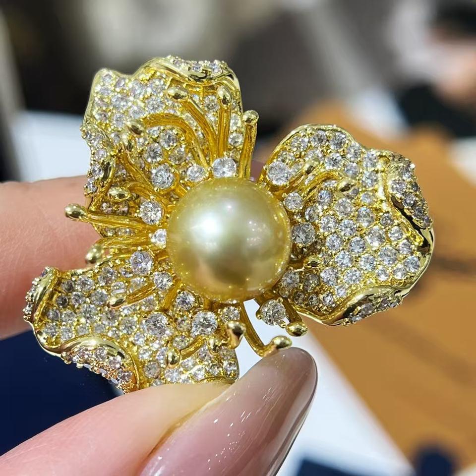 เข็มกลัดไข่มุกทองคำหนานยาง สไตล์เรโทรฝรั่งเศส หรูหราเบาๆ ระดับไฮเอนด์ ดีไซน์ลายดอกไม้ สำหรับใส่บนเสื้อผ้า ขายส่งและขายปลีก