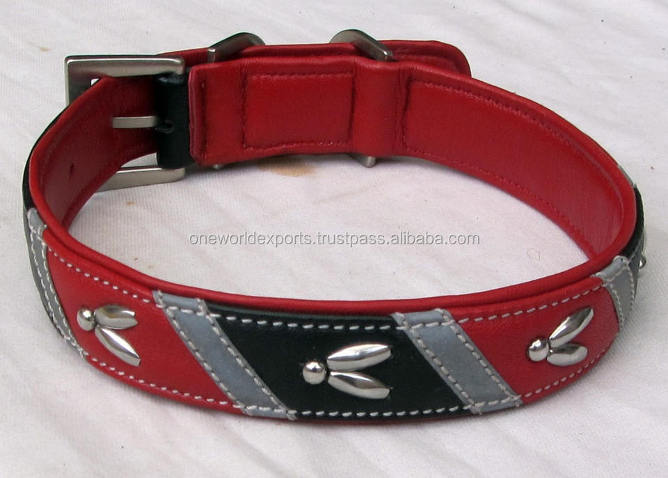 Napa Soft Sheepskin Leather Pet Leash Solid Pattern Dog Collar Banana Shaped Steel Clinchers Radium Rivets Sustainable Padded