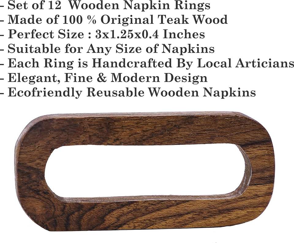 ชุดแหวนผ้าเช็ดปากทำจากไม้สัก12ชิ้นที่ใส่แหวนผ้าเช็ดปากงานปาร์ตี้ตกแต่งโต๊ะรับประทานอาหารทุกวัน