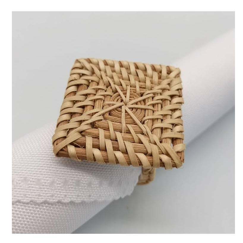 แหวนผ้าเช็ดปากทรงสี่เหลี่ยมสีธรรมชาติงานหัตถกรรม