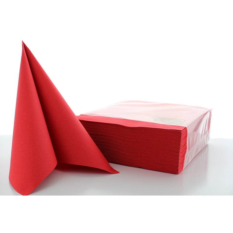 ผ้าเช็ดปากสีแดงขนาด40x40ซม. 1/4พับทำจาก linclass