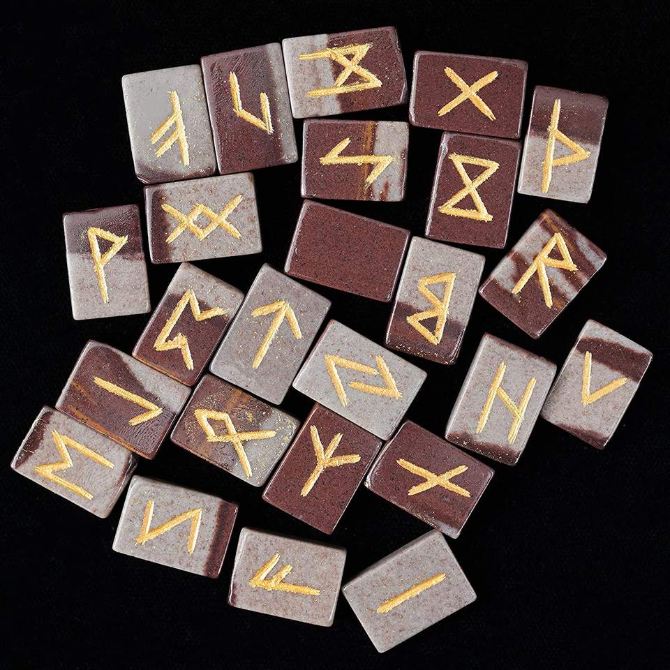 Narmada jasper Cube Crystal Rune Set Natural Wicca Energy Stone for Divination and Intuition Meditation Protection Viking Runes