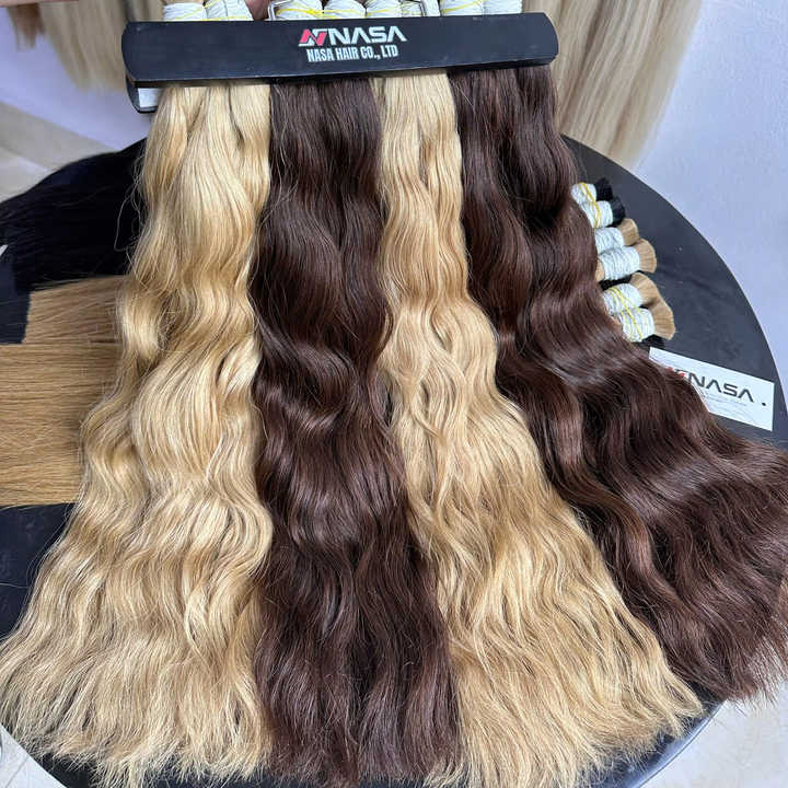 ผมต่อแบบเส้นคู่ ยี่ห้อ Nasa Hair Bulk Double Drawn Machine Double Weft สีอ่อนธรรมชาติ ลอนธรรมชาติ ผมเวียดนามแท้ Remy ขนาด 50 ซม. 60 ซม. 100 ซม.