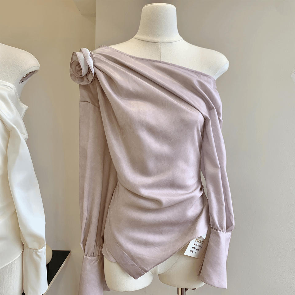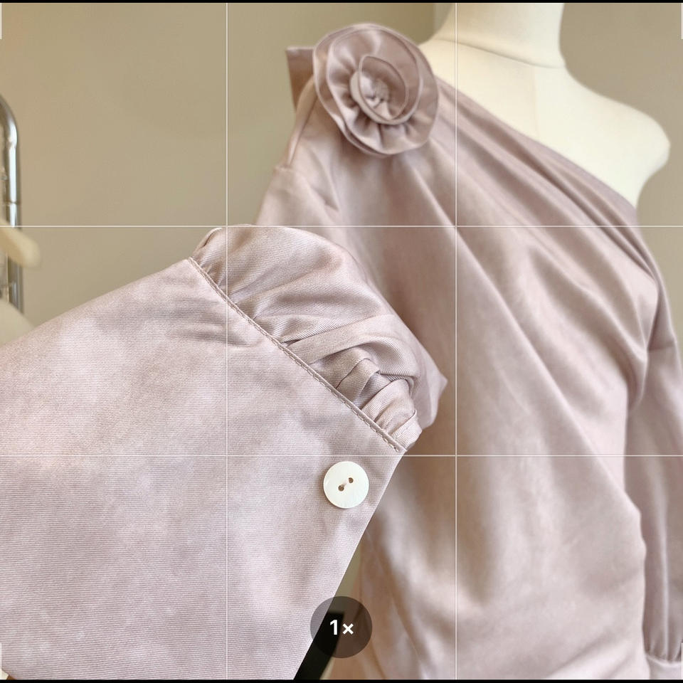 ชุดเดรสแขนยาวลายดอกไม้แบบอสมมาตร Nat Plus Sweet Character Pattern สีชมพูอมขาว ผ้าโพลีเอสเตอร์ แห้งเร็ว ระบายอากาศได้ดี เสื้อผู้หญิง