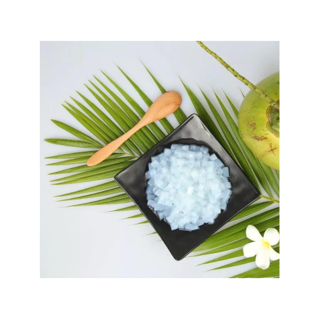 เนื้อมะพร้าวและพุดดิ้งเยลลี่ นาตะ เดอ โคโก้ หวานผสมกับผลิตภัณฑ์อื่นๆ น้ําอัดลม