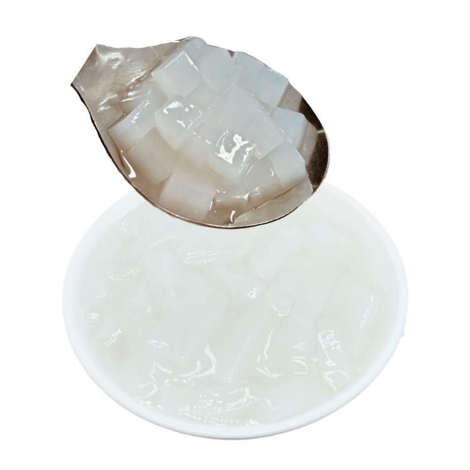 Nata De Coco เยลลี่มะพร้าวก้อนเยลลี่สำหรับเครื่องดื่มและขนมหวานขนาดกำหนดเองและฉลากส่วนตัว