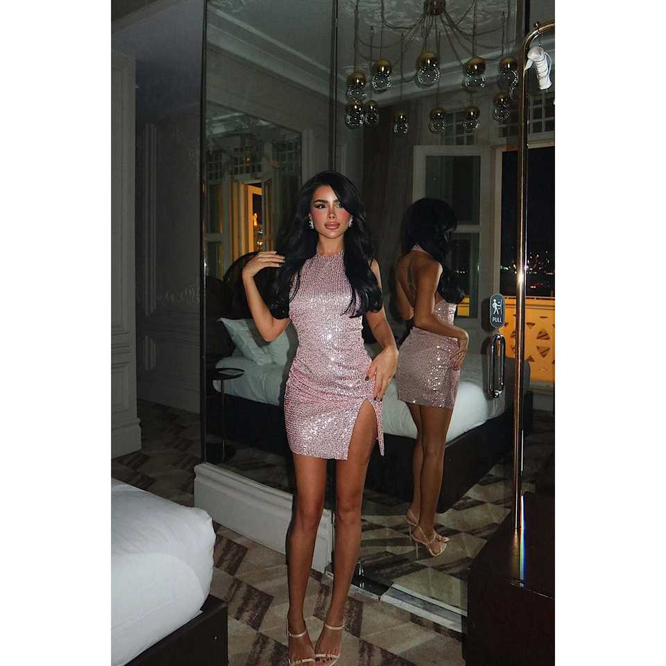 ชุดราตรีนาเตบา มินิ สีชมพูพาสเทล