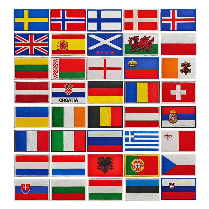 ธงชาติของประเทศยุโรปทุกประเทศ แบบติดแถบตีนตุ๊กแก ขนาด 8*5 ซม.