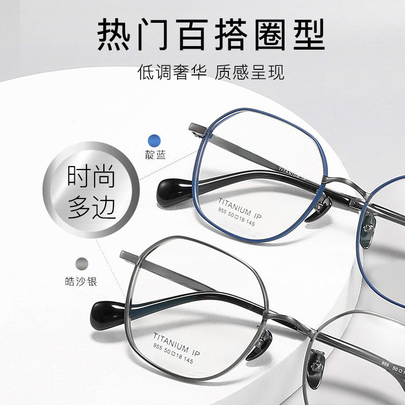 กรอบแว่นตาไทเทเนียมมหาวิทยาลัยแห่งชาติ รุ่น 955 ทรงแปดเหลี่ยมเต็มกรอบ น้ำหนักเบา เลนส์เรซิ่น สำหรับทุกเพศ ผลิตที่เซินเจิ้น