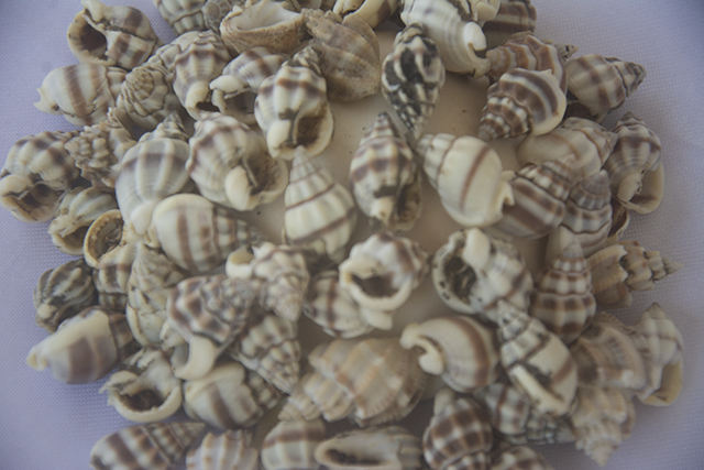 เครื่องประดับเปลือกหอยแกะสลักธรรมชาติ ขนาด 1-3 ซม. รูปทรงปิรามิด ด้วยเทคนิคโมเสก ประดับเปลือกหอยขนาดเล็ก ให้สัมผัสเสมือนเปลือกหอยจริง