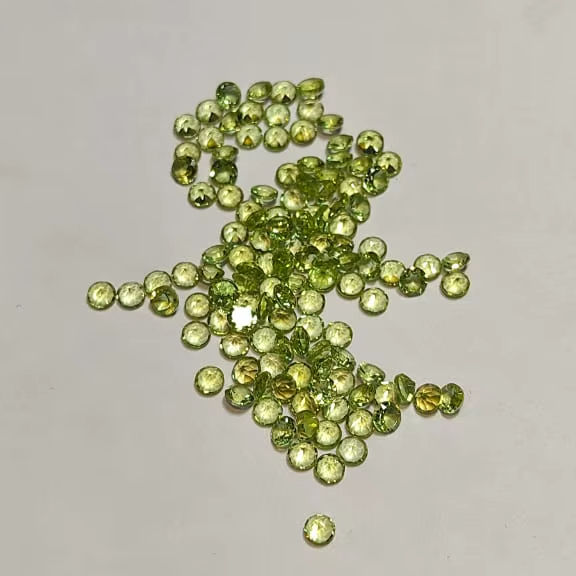 พลอยเพอริดอตทรงกลมเจียระไนแบบบริลเลียนต์ธรรมชาติ ขนาด 1.5 มม. สีเขียว สำหรับทำเครื่องประดับ