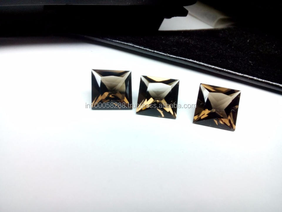 หินควอทซ์สีควันทรงสี่เหลี่ยมตัดตามธรรมชาติขนาด10*10มม. สำหรับเจ้าหญิง