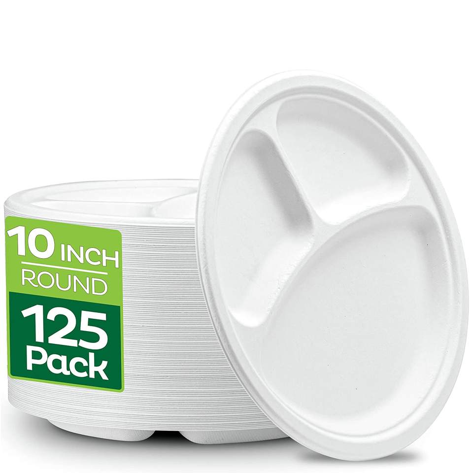 จานเซรามิกแบบใช้แล้วทิ้งเป็นมิตรกับสิ่งแวดล้อมทนทานย่อยสลายได้ตามธรรมชาติขนาด10นิ้วแบบ3ช่องย่อยสลายได้ตามธรรมชาติ