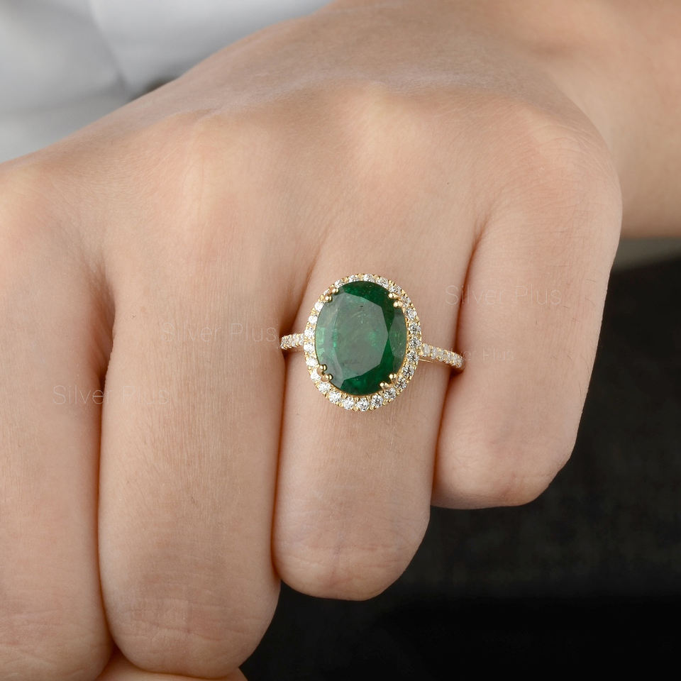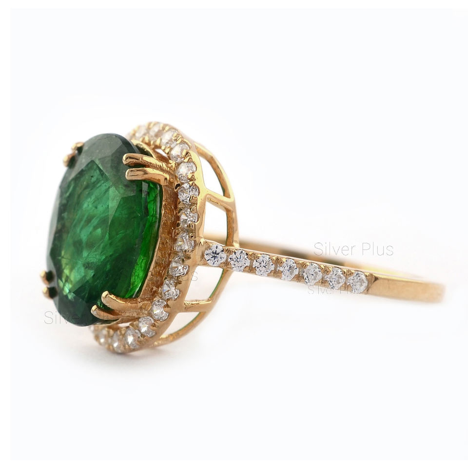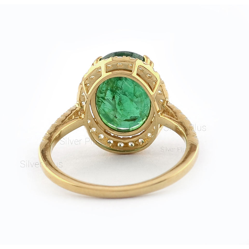 แหวนทองคำธรรมชาติ18K แหวนพลอยมรกตสีเขียวเครื่องประดับอินเดียผลิตในราคา10K/14K