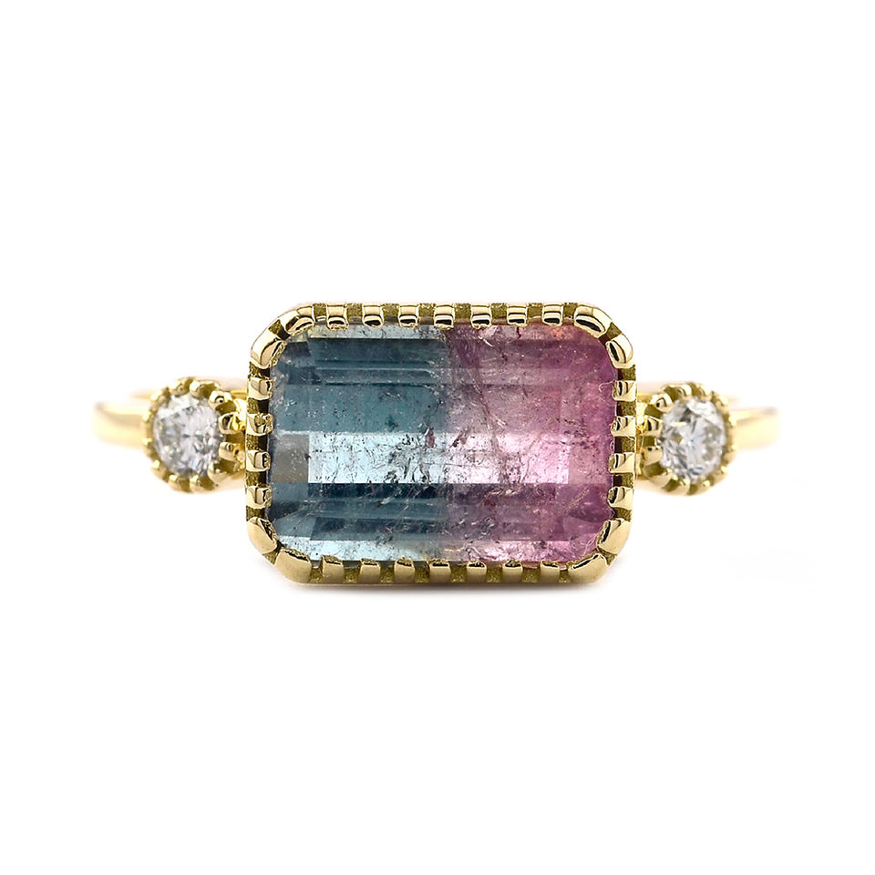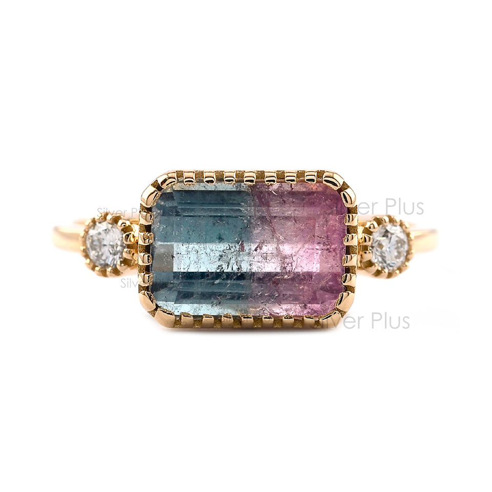 แหวนเพชรทัวร์มาลีนแตงโมทอง18K ธรรมชาติสำหรับงานหมั้นงานแต่งงาน