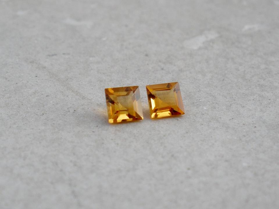 พลอยซิทรินสีทองธรรมชาติทรงสี่เหลี่ยมขนาด 4 มม. จำนวน 2 เม็ด รับรองโดยผู้ตรวจสอบอิสระ สำหรับทำเครื่องประดับสีเขียว