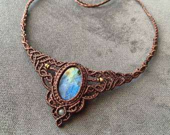 ชื่อสินค้า:สร้อยคอมาคราเม่ประดับด้วยอัญมณีเทอร์ควอยซ์