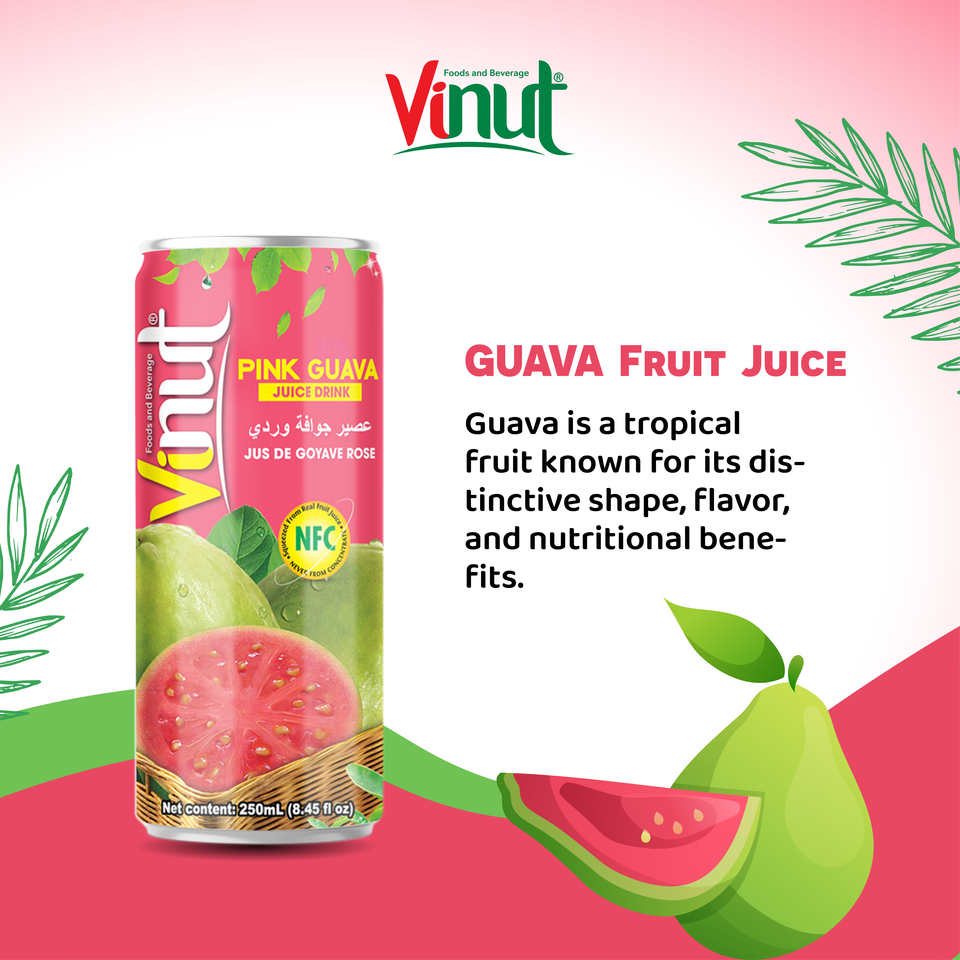 เครื่องดื่มน้ำผลไม้ฝรั่งสีชมพูธรรมชาติ250มล. พร้อมชาผลิตสด NFC OEM ODM จากโรงงานเวียดนาม
