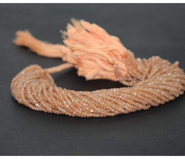 ลูกปัดมูนสโตนสีพีชธรรมชาติขนาด 3 มม. ทรงรอนเดลล์เจียระไน เกรด AAA+ ได้รับการรับรองจาก IGI สายลูกปัดหินที่มีเอกลักษณ์เฉพาะตัวจาก Vivaaz Gems