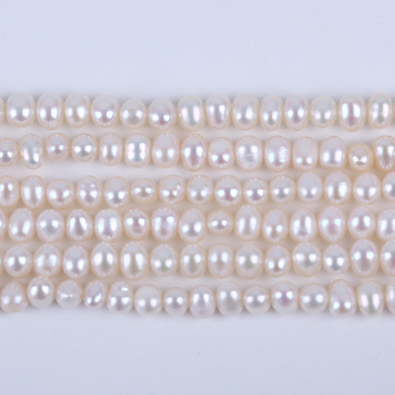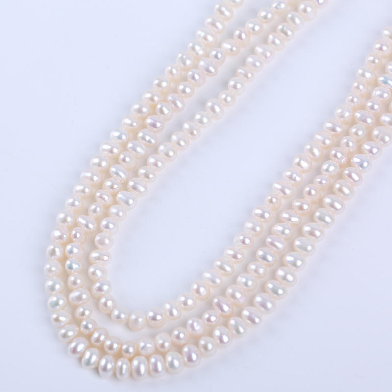 ไข่มุกน้ำจืดทรงรี/ทรงมันฝรั่ง ขนาด 4-5 มม. ร้อยเป็นสาย สำหรับงาน DIY ขายส่ง