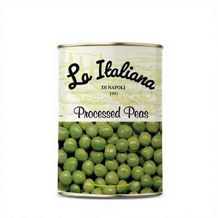 ถั่วลันเตาเขียวธรรมชาติ 400 กรัม บรรจุน้ำ พร้อมรับประทาน ผลิตในอิตาลี ผักกระป๋อง