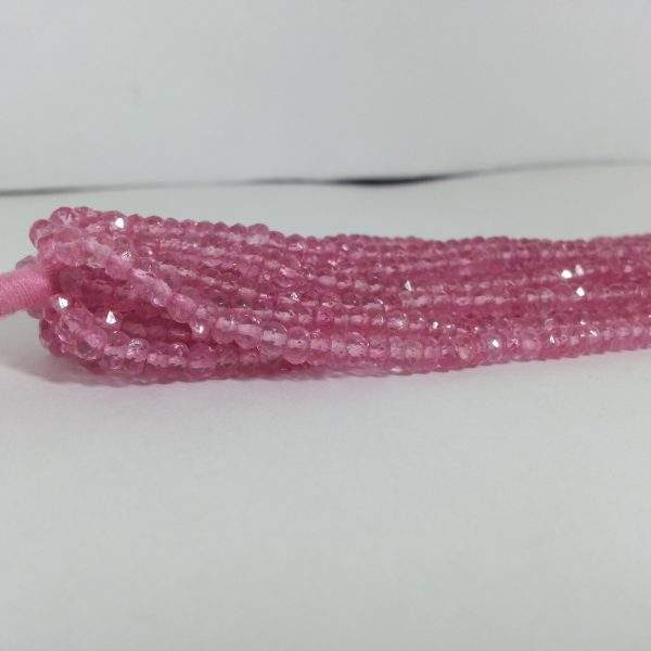 หินบุษราคัมสีชมพูธรรมชาติขนาด4มม. ลูกปัดเจียระไนแบบเส้น AAA + เกรด IGI ได้รับการรับรอง