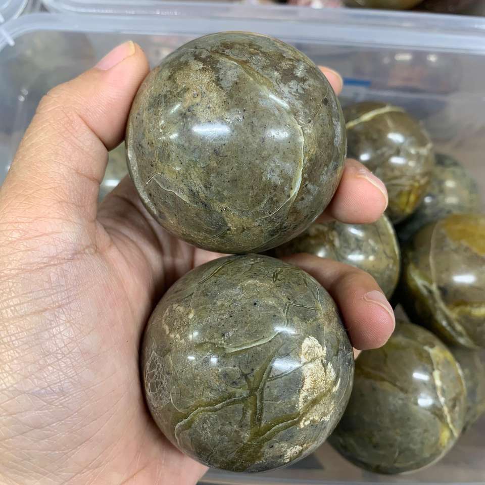 ลูกบอลหินมังกรเซปตารีน ลูกบอลคริสตัลธรรมชาติ หินฟอสซิลขัดเงา ลวดลายไม่ซ้ำใคร เส้นผ่านศูนย์กลาง 5 ซม.