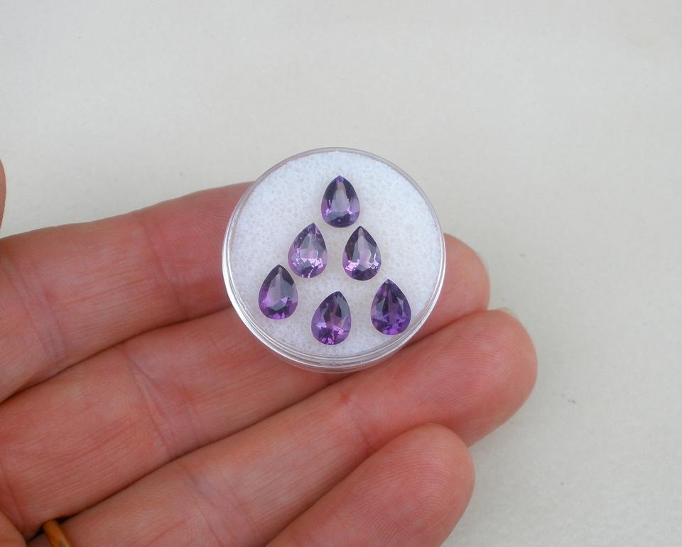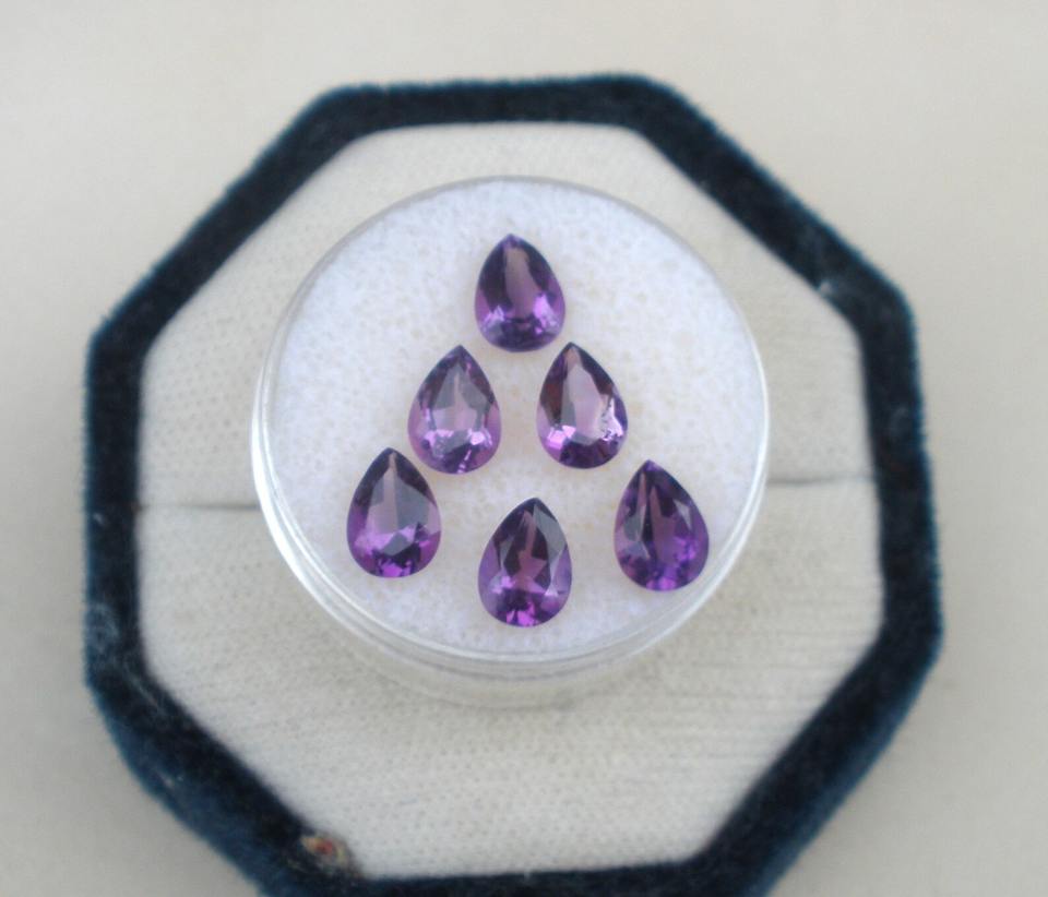 พลอยแอมเมทิสต์แอฟริกันธรรมชาติทรงหยดน้ำ 6 เม็ด ขนาด 7x5 มม. แต่ละเม็ด รับรองโดยผู้ตรวจสอบอิสระ สำหรับทำเครื่องประดับ
