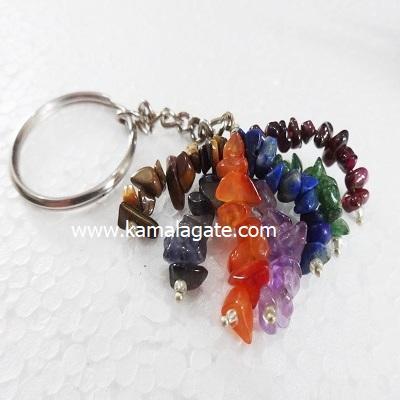 พวงกุญแจจักระ7แบบธรรมชาติพวงกุญแจคริสตัลนำโชคพร้อมชิปคริสตัลหรูหราสำหรับตกแต่งงานหัตถกรรมหินกึ่งมีค่า