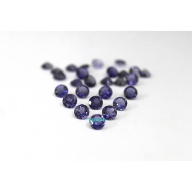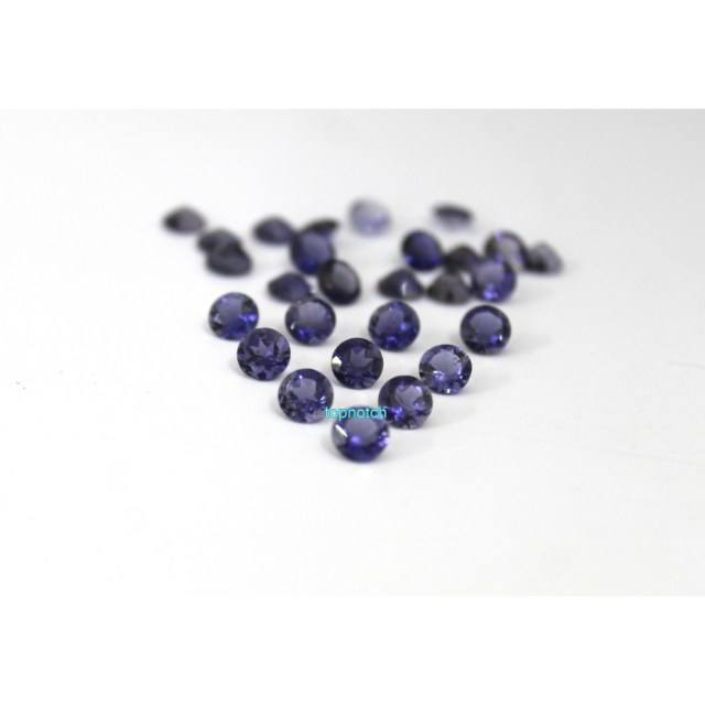 พลอยไอโอไลต์สีน้ำเงินธรรมชาติ ขนาด 7 มม. น้ำหนัก 1.32 กะรัต ทรงกลมเจียระไนแบบบริลเลียนท์ มีรอยแตก สำหรับทำเครื่องประดับ บริษัท เอ็มเค คอร์ปอเรชั่น เจมสโตน ไอโอไลต์