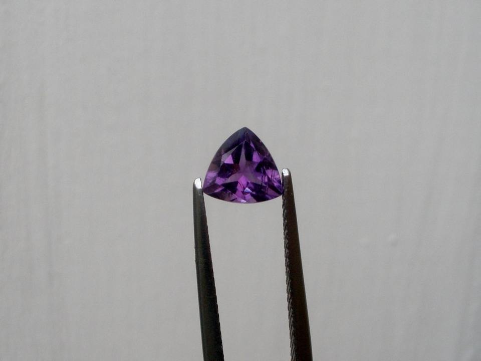 อเมทิสต์ทรงทริลเลียนธรรมชาติขนาด 7 มม. อัญมณีธรรมชาติสำหรับเครื่องประดับและงานฝีมือ ได้รับการรับรองจากผู้ที่ไม่ใช่ฝ่ายใด สำหรับการทำเครื่องประดับสีเขียว พร้อมเอฟเฟกต์รูปดาว