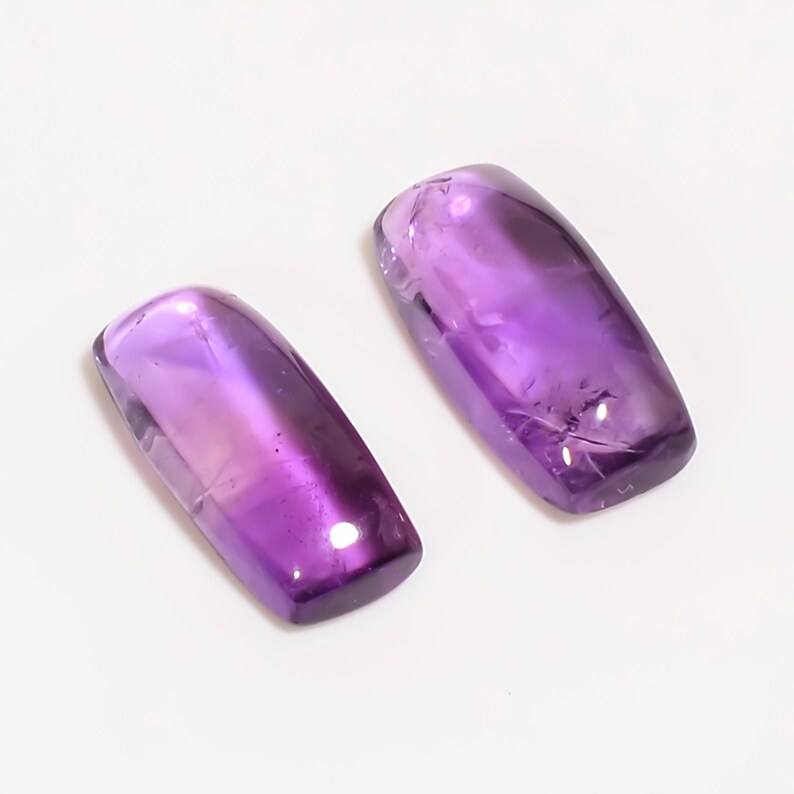 พลอยแอมเมทิสต์สีม่วงธรรมชาติจากแซมเบีย 9.5 กะรัต ทรงเรเดียนท์คัท คาโบชอง ขนาด 15x8x5 มม. ขัดเงาด้วยมือ พลอยหลวมคู่ สำหรับทำเครื่องประดับ DIY รุ่น GPJ-1160