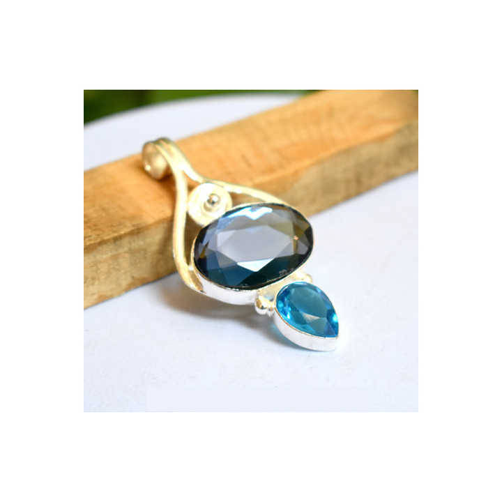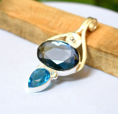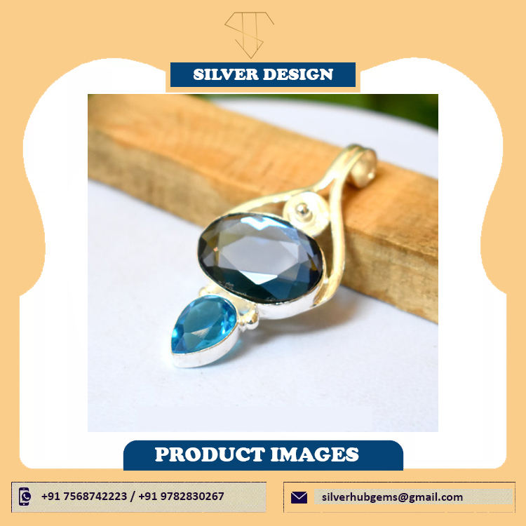 จี้พลอยโทแพซสีฟ้ารูปไข่เงิน925ธรรมชาติสำหรับขายส่ง925เครื่องประดับเงินสเตอร์ลิงจี้หินธรรมชาติ
