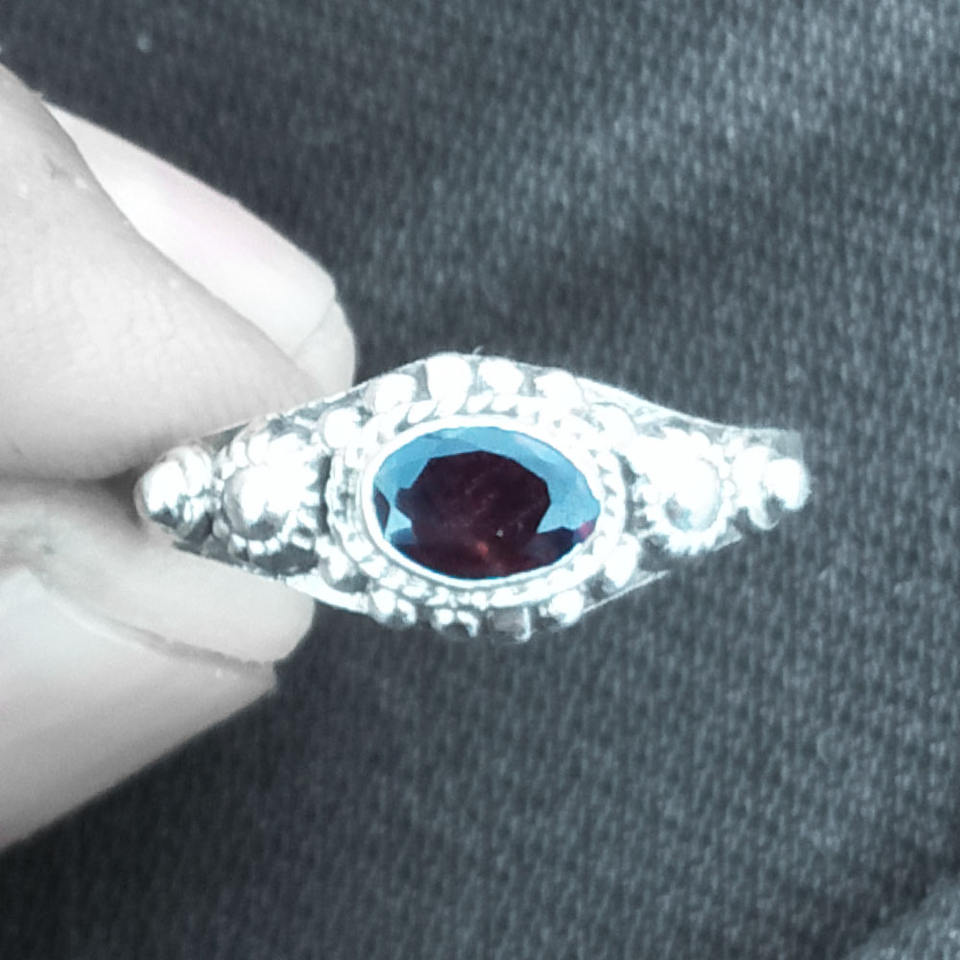 แหวนพลอยโกเมนสีเงินสเตอริง925ธรรมชาติสำหรับเด็กผู้หญิงแหวนเงินคุณภาพดีตามสั่ง