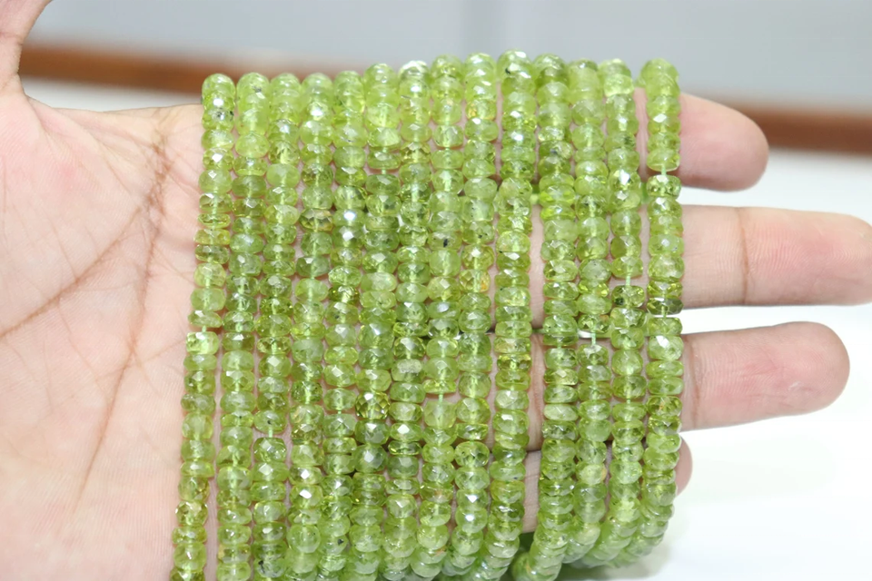 ลูกปัดหินเพอริโดทอตธรรมชาติขนาด5-6มม. ลูกปัดหินเพอริโด