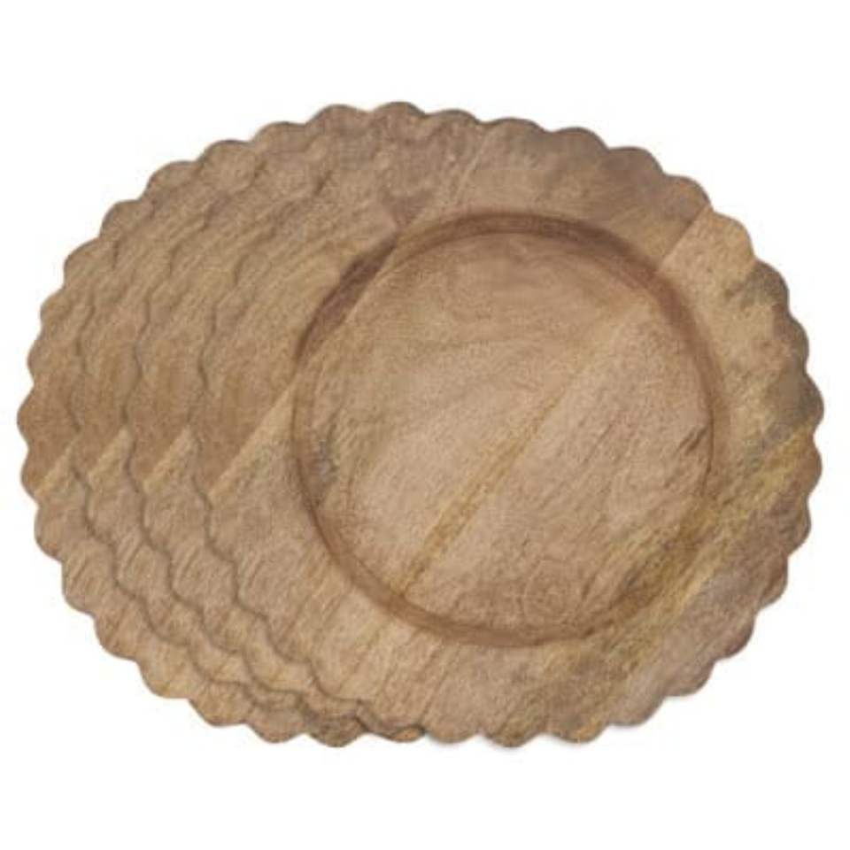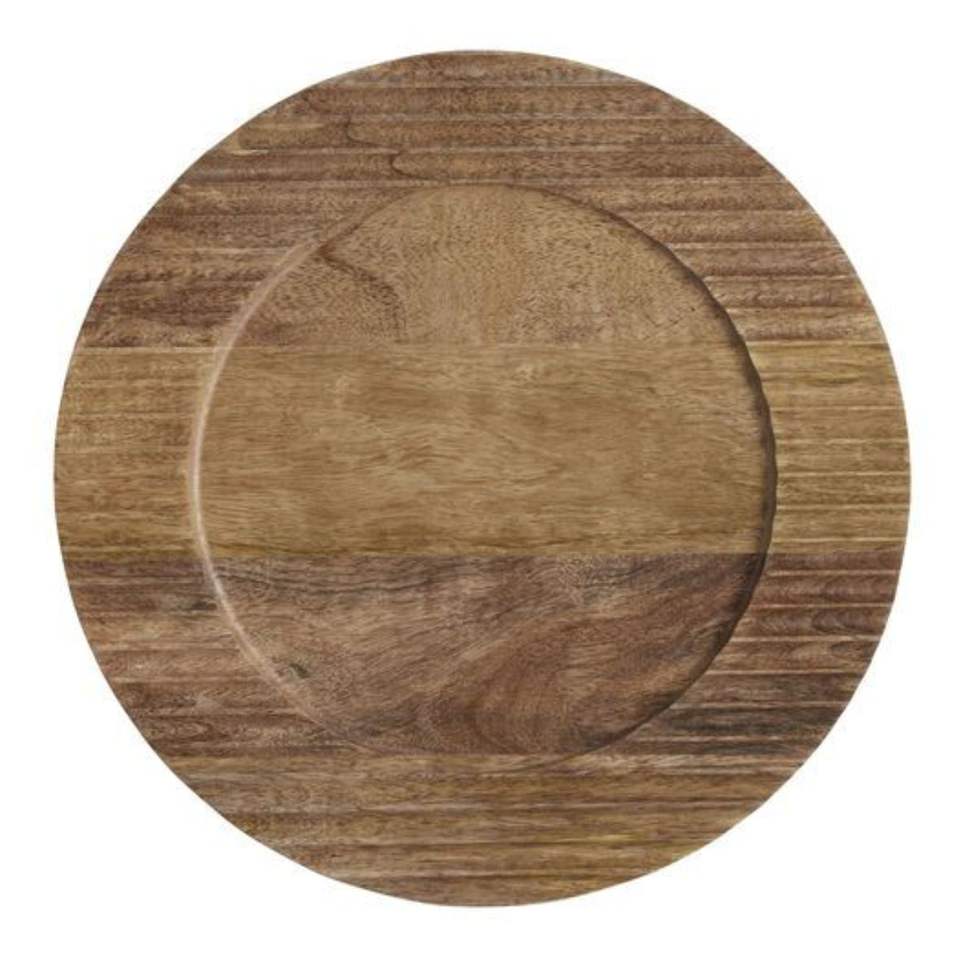 จานรองอาหารไม้กระถินณรงค์ธรรมชาติทรงกลมขนาด 13 นิ้ว จานไม้สไตล์เรียบง่ายสำหรับงานแต่งงาน งานเลี้ยง และตกแต่งโต๊ะ