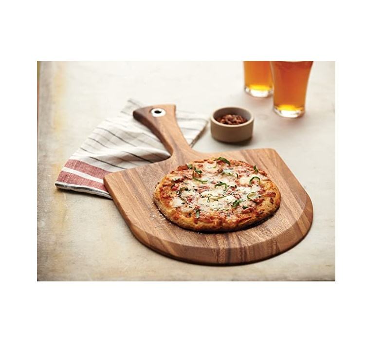 กระทะพิซซ่าไม้อะคาเซียธรรมชาติคุณภาพดีที่สุดสำหรับมื้อค่ำใช้ในชีวิตประจำวันรูปทรงสี่เหลี่ยมสำหรับผลไม้สวิตช์สเต็กหัตถกรรมหินพิซซ่า