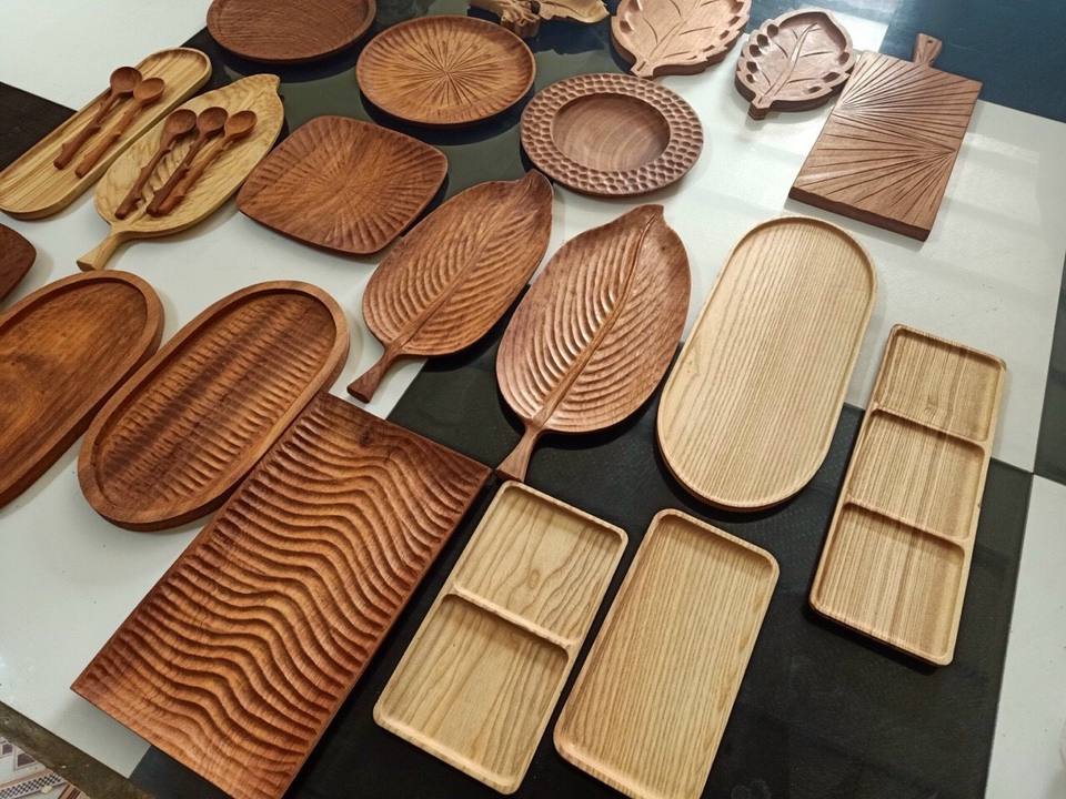 จานไม้อะคาเซียธรรมชาติทันสมัยทันสมัยทันสมัยสำหรับเสิร์ฟอาหารส่วนบุคคลใช้ซ้ำได้เครื่องครัวรับประทานอาหารที่ทำจากไม้
