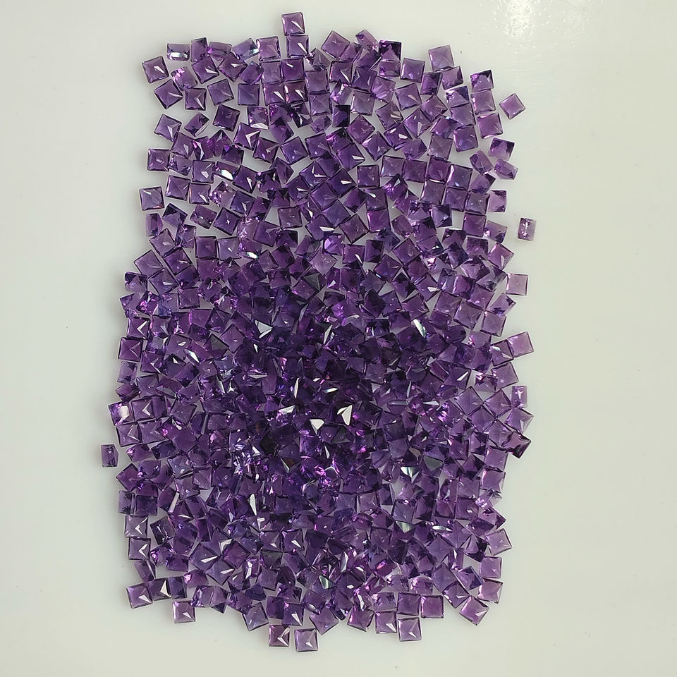อเมทิสต์แอฟริกันธรรมชาติ ควอตซ์ทรงสี่เหลี่ยมเจ้าหญิงขนาด 2.5 มม. สีม่วง คุณภาพดีที่สุด พลอยหลวมสำหรับทำเครื่องประดับ