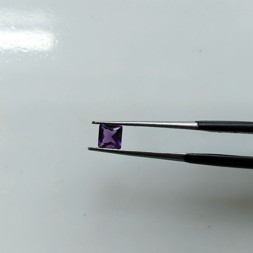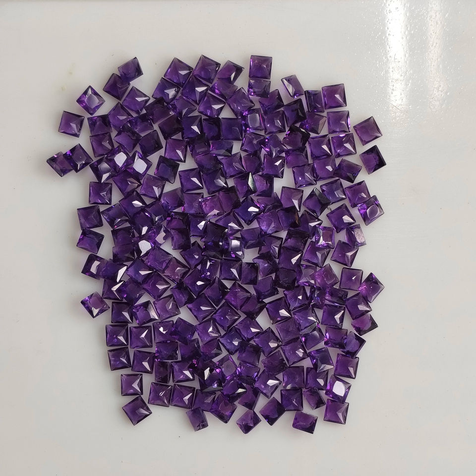 ควอตซ์ธรรมชาติอเมทิสต์ 4 มม. ทรงสี่เหลี่ยมเจ้าหญิง ตัดเจียระไนแบบหลวมๆ สำหรับทำเครื่องประดับ รีด์เมาน์เทน เจมส์ R4AFSQCTP4