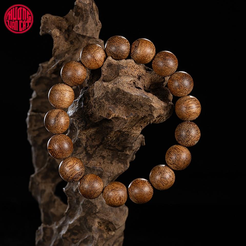 สร้อยข้อมือไม้กฤษณาธรรมชาติ ลูกปัดกลมขนาด 12 มม. ไม้แก่แตกแตกลอกบางส่วน น้ำหนักเบา กลิ่นหอมเข้มข้น หายาก น้ำหนัก 14.67 กรัม