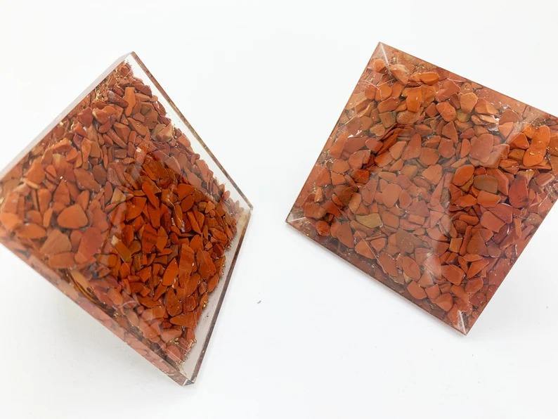 มาสคอตพลอยรักษาจักระ Jasper Orgonite พีระมิดสีแดงธรรมชาติแบบแฮนด์เมด