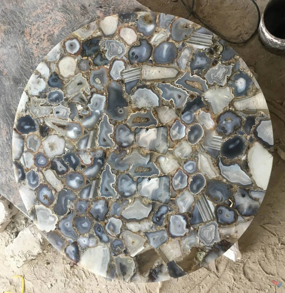 โต๊ะกาแฟหินอาเกตธรรมชาติรูปทรงกลม เป็นมิตรกับสิ่งแวดล้อม สำหรับตกแต่งห้องนั่งเล่นและเฟอร์นิเจอร์ในบ้าน สำหรับเทศกาล Diwali